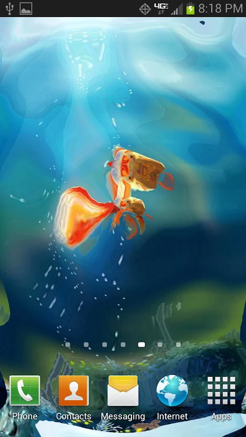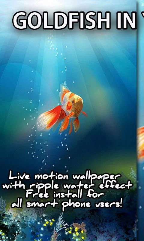 Pez de Colores Interactivo en tu Móvil, con movimiento LWP, guardar gratis como tapiz o fondo de pantalla. Verdadero pez de colores, en un acuario en movimiento, con efectos ondulantes reales, nadando en Pez de Colores Interactivo en tu Móvil, LWP Gratis para móviles.